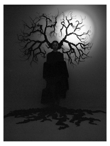 “I started my work using Korean mother-of-pearl from familiar things around us. When I was young, each house had furniture made out of mother-of-pearl, called ‘jaggae’ in Korea, which is a traditional Korean craft. Nowadays, it is used as a cafe or private space interior, and young people are also familiar with it. I was inspired by this familiar, traditional and popular Korean craft. I traveled around Korea a lot in 2020 and I became interested in the shapes of the trees. I experimented with the tree-shaped hair styling several times and developed it. The ‘tree series’ is my last work from 2020 and a big team was involved in its creation.”